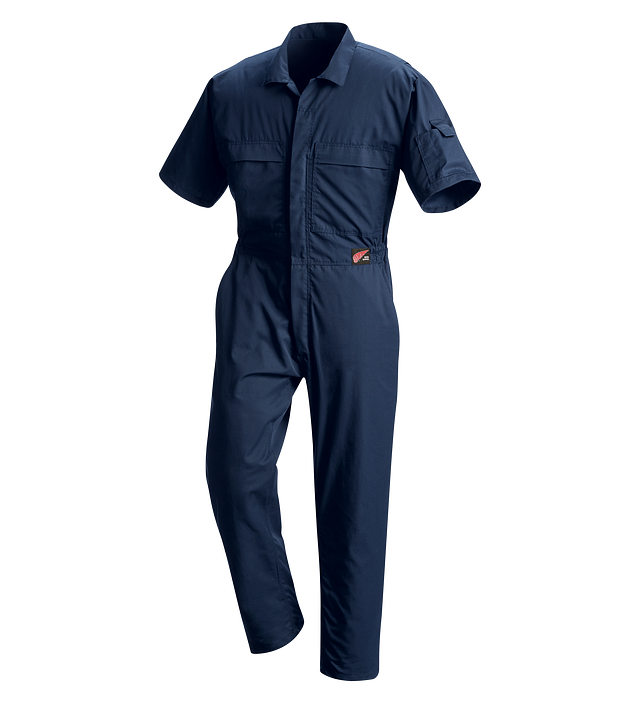 This short sleeve coverall has a classic look and great fit. It features eight pockets and YKK non-sparking zippers throughout. 100% brass press studs are covered on the inside, so no brass comes in contact with your skin. Major seams are double- or triple-stitched and stress points are bar-tacked for strength.