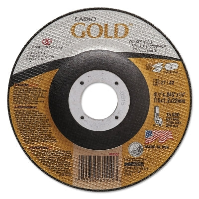 Carbo™ GoldCut™ Reinforced Aluminum Oxide Abrasive, 4-1/2 in dia, 0.045 in Thick, 7/8 in Arbor, 30 Grit