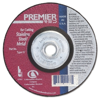 Premier™ Red Zirconia Alumina Depressed Center Wheel, 4-1/2 in dia, 1/4 in Thick, 5/8 in Arbor, 24 Grit